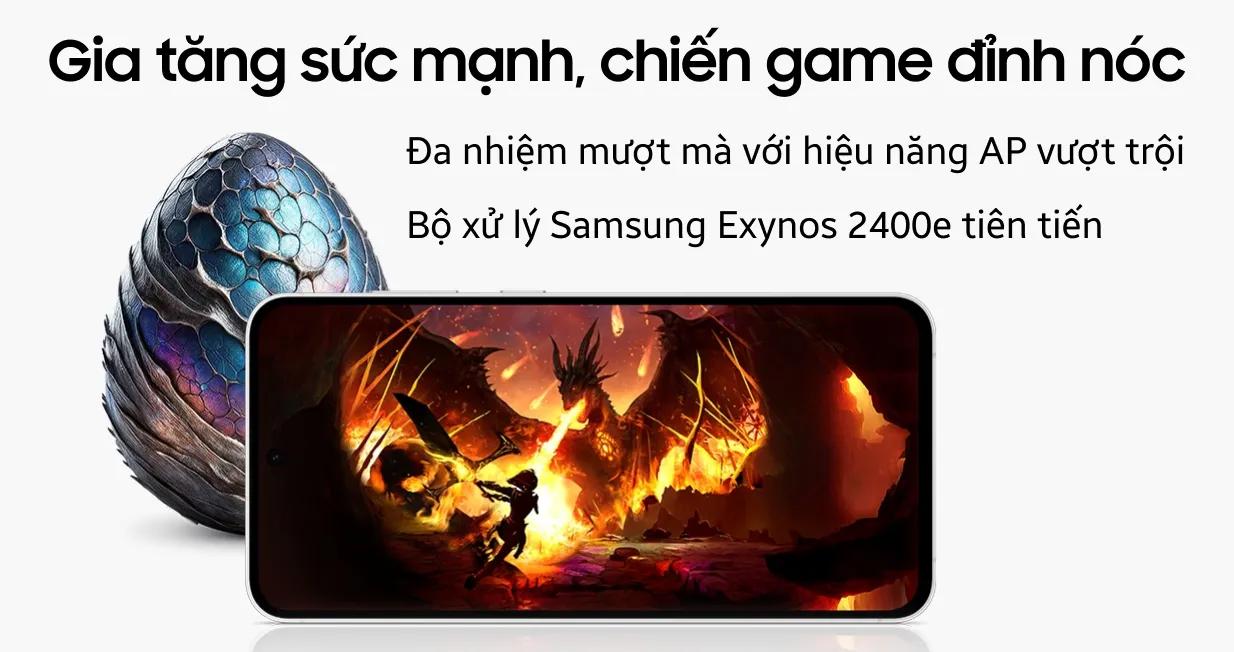 - Vi xử lý: Exynos 2400e mạnh mẽ hỗ trợ Ray Tracing, đảm bảo hiệu suất chơi game ổn định và mượt mà cho game thủ.